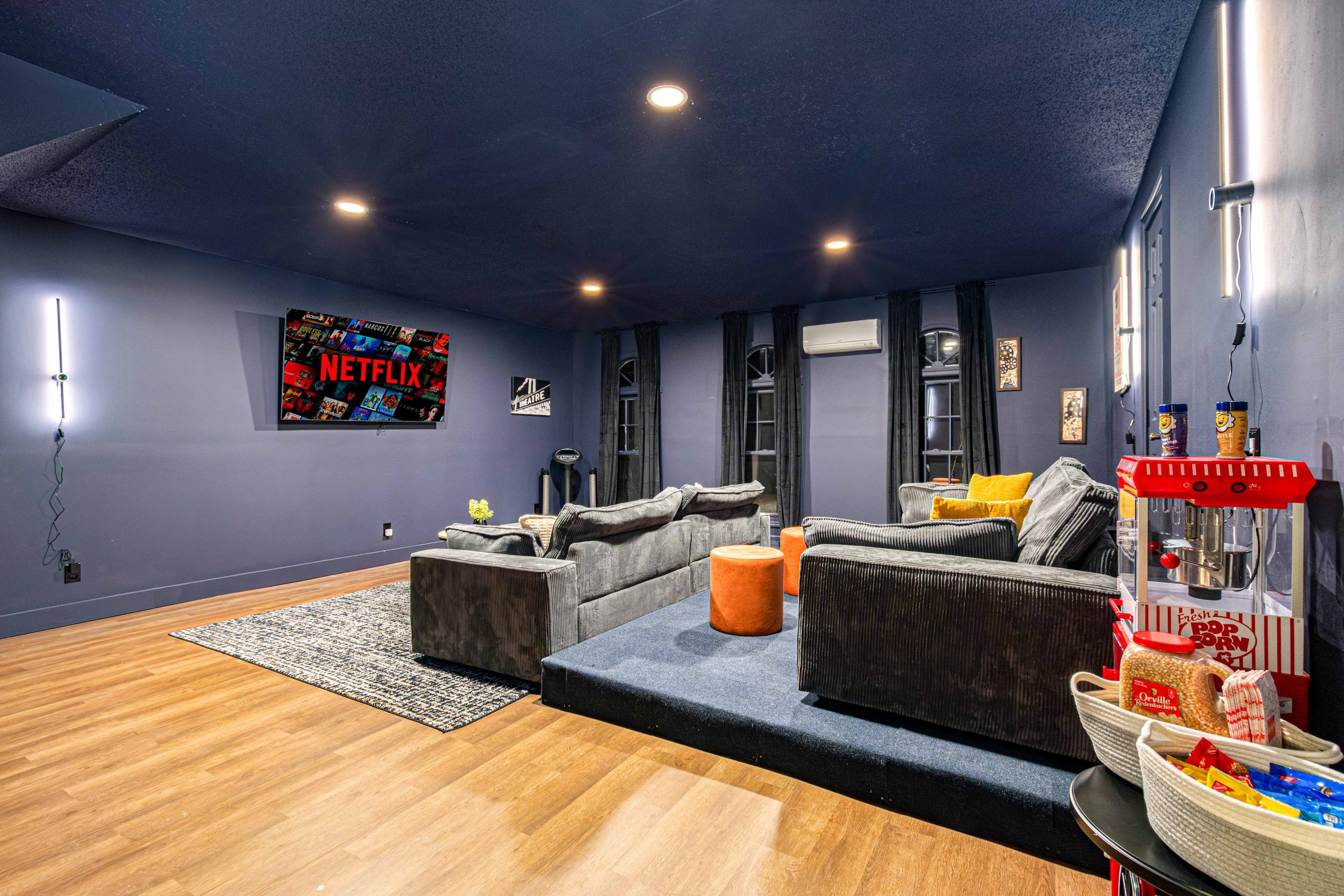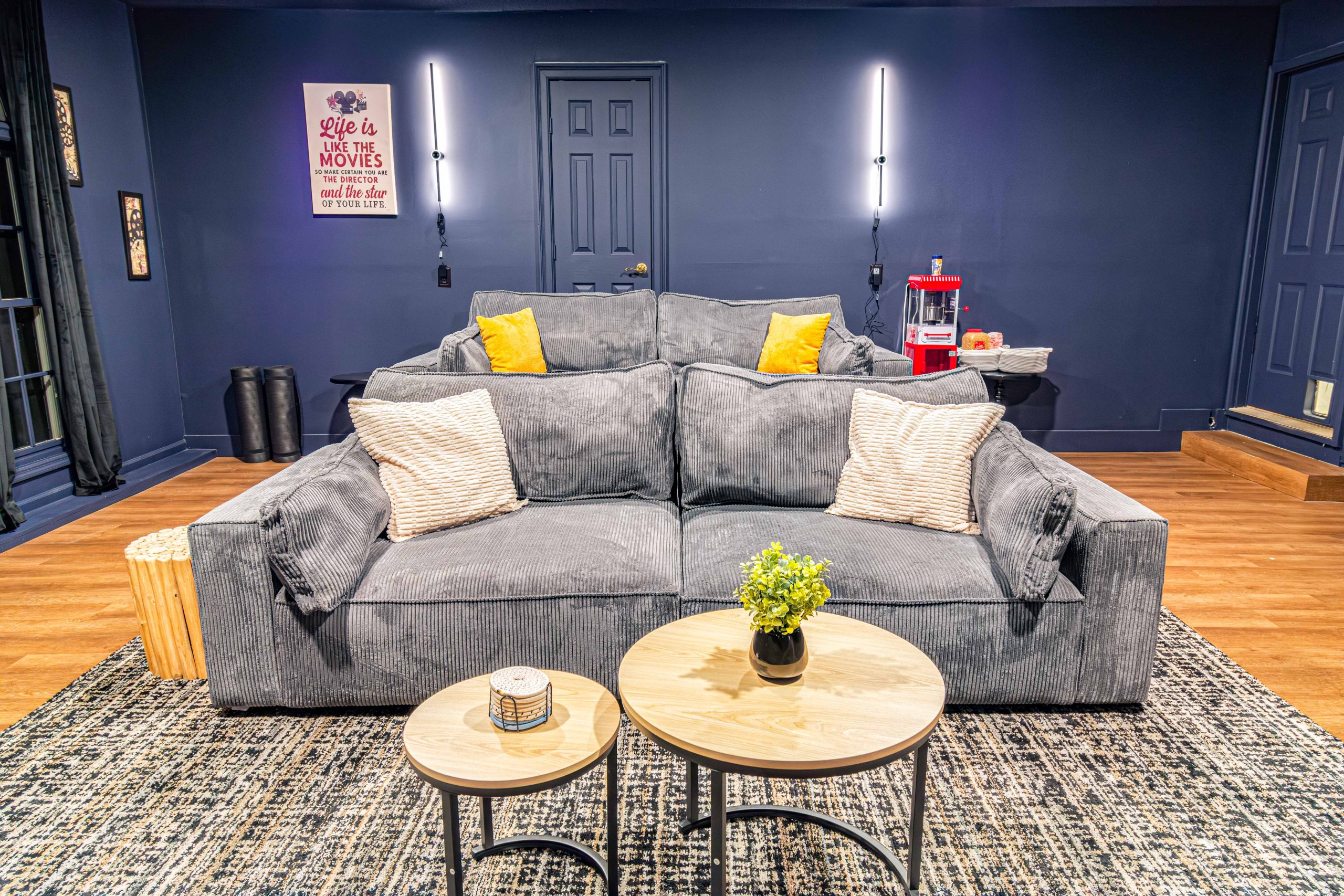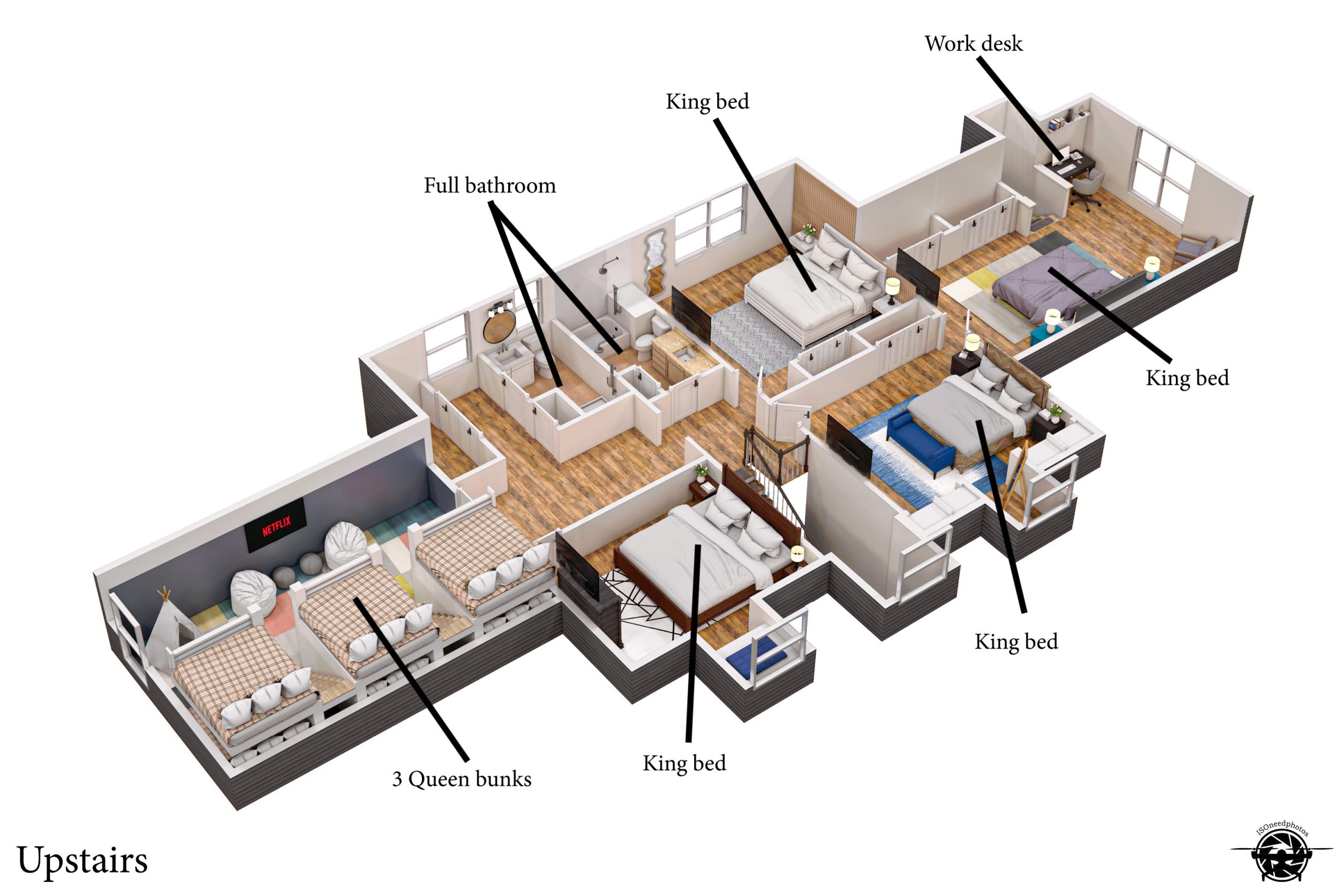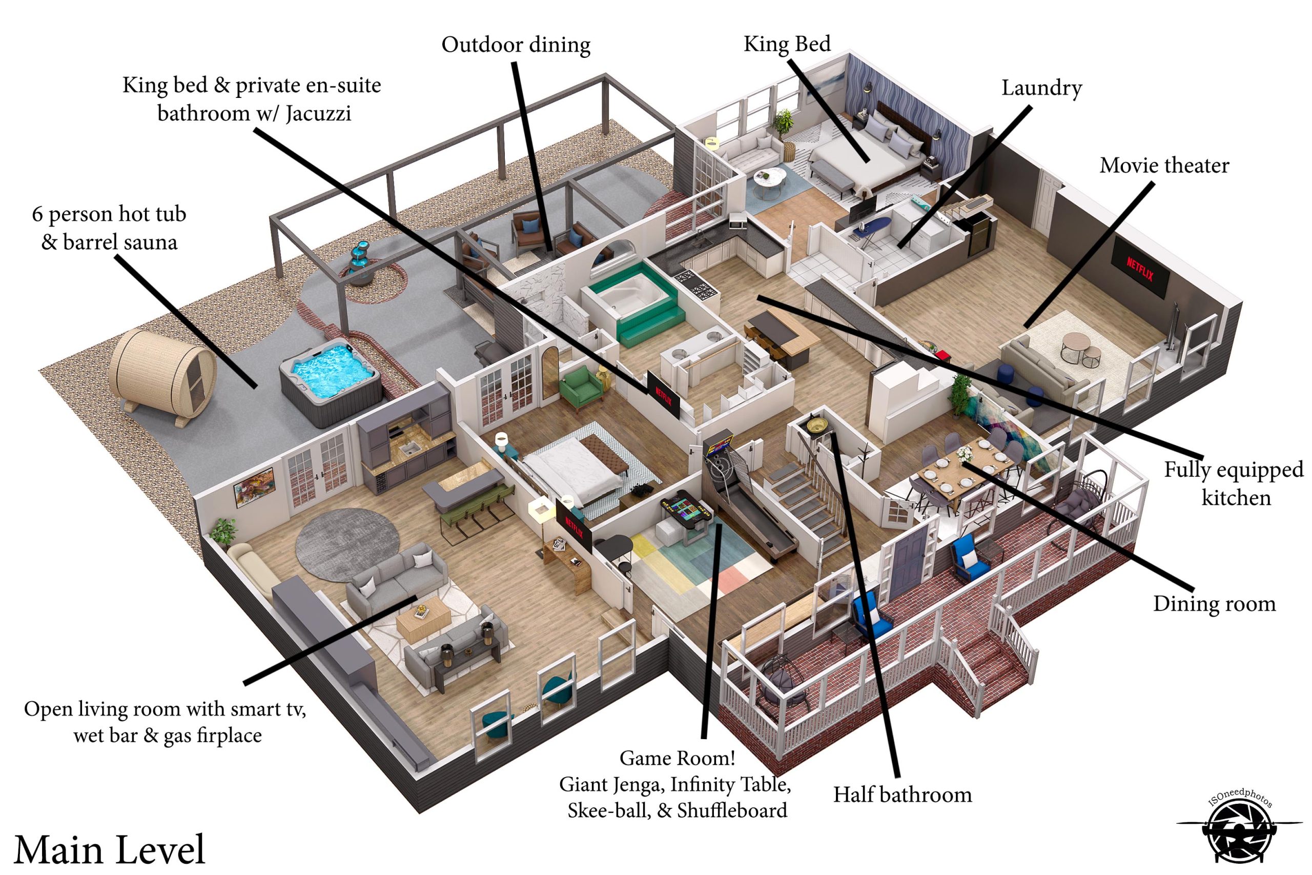Gallery Bedrooms Master King Bedroom 1Master King Bedroom 1Main Level King Bedroom 2Upstairs King Bedroom 3Upstairs King Bedroom No 4Second Floor King Bedroom 5Second Floor King Bedroom 5Upstairs King Bedroom 6Upstairs Bunk Bedroom 6 queen over queen Backyard defaultHot Tub and SaunaOutdoor seating areaOutdoor seating areaBackyardBackyard AmenitiesBackyard Fire PitHouse frontHouse Aerial viewHouse frontSauna and Hot TubFire Pit AreaOutdoor Seating AreaBackyard Hot Tub and Sauna Game Room Main Level Game RoomMain Level Game RoomMain Level Game RoomMain Level Game Room Home Theater Main Level Movie TheaterMain Level Movie Theater with Karaoke and Popcorn machineMain Level Movie TheaterMain Level Movie Theater Kitchen KitchenKitchenKitchenKitchen AmenitiesKitchen with commercial stoveKitchen AmenitiesStocked Kitchen Family Room First Floor Living RoomFirst Floor Living RoomFirst Floor Living RoomMain Level Living RoomFamily Room Layout First FloorSecond Floor